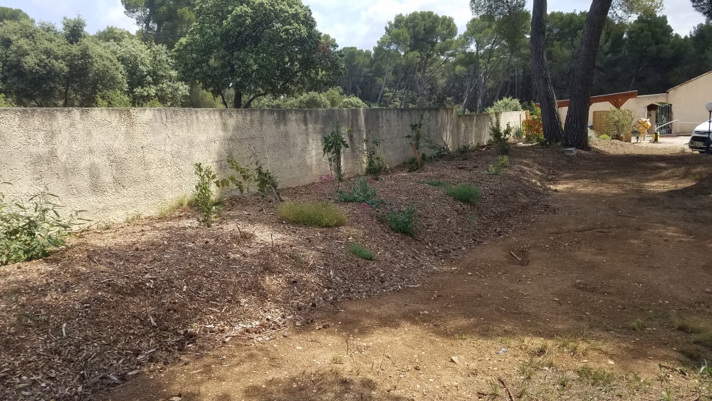 - Apport et mise en place Terre Compost pour la plantation et BRF pour le paillage.